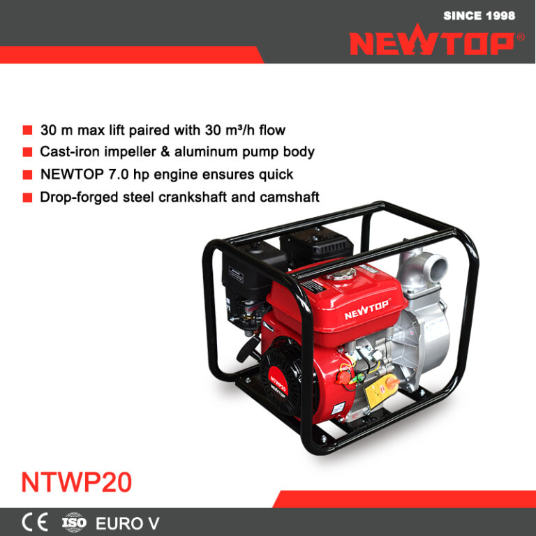 Built around NEWTOP’s dependable 170F engine platform, the NTWP20 delivers stable power output, smooth operation, and consistent water-handling performance. Its reinforced construction and precision-machined pump body make it a reliable choice for demanding field tasks where durability, easy starting, and efficient water transfer are essential.