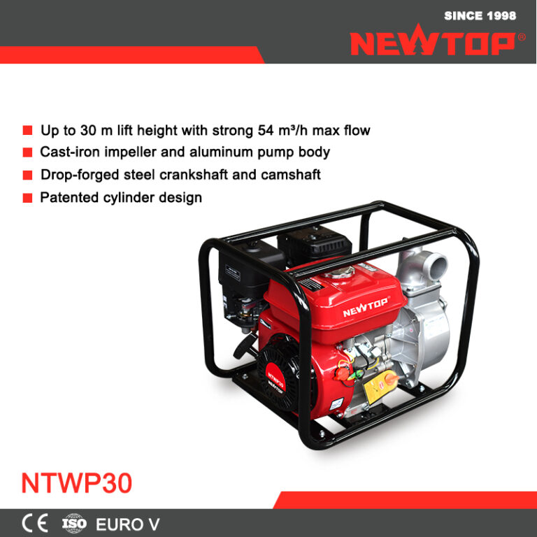 NEWTOP’s NTWP30 water pump delivers dependable performance through a powerful gasoline engine, durable pump construction, and stable operation across demanding field conditions. Designed for quick starting, efficient water transfer, and long service life, it provides reliable support for irrigation, drainage, emergency use, and general water-moving tasks.