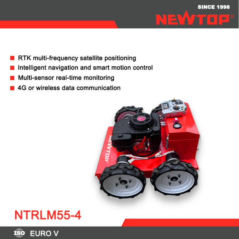 The NEWTOP Robotic Lawn Mower NTRLM55-4 is a wheel-driven robotic lawn mower developed for intelligent unmanned mowing with precise navigation and reliable remote control. By combining RTK-based positioning, real-time sensing, and smart motion control, this robotic lawn mower delivers stable performance and responsive operation for large outdoor mowing areas.