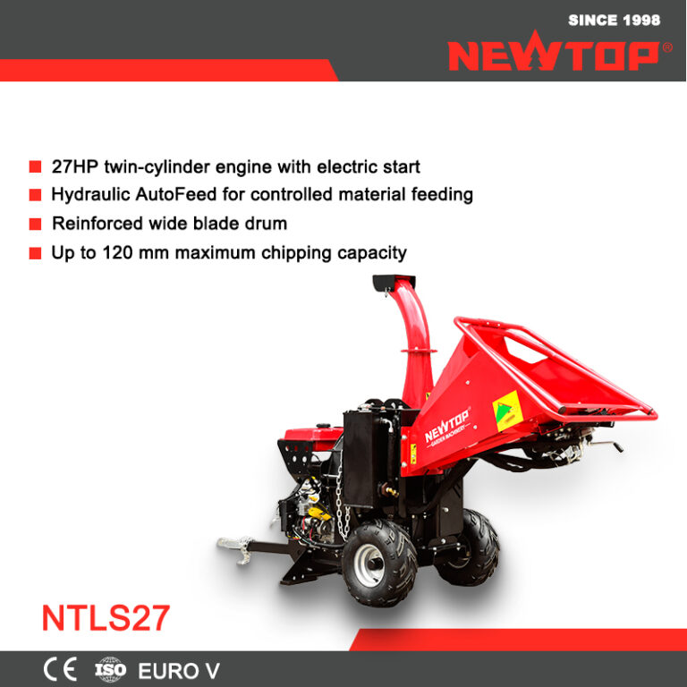 To enhance usability in real job conditions, the discharge hopper is designed to expose part of the drum chamber, enabling faster clog clearing and easier routine maintenance. With durable construction and hydraulic oil support for long working cycles, the NEWTOP NTLS27 Wood Chipper is well suited for forestry maintenance, landscaping contractors, and professional wood processing applications where NEWTOP reliability and productivity are required.