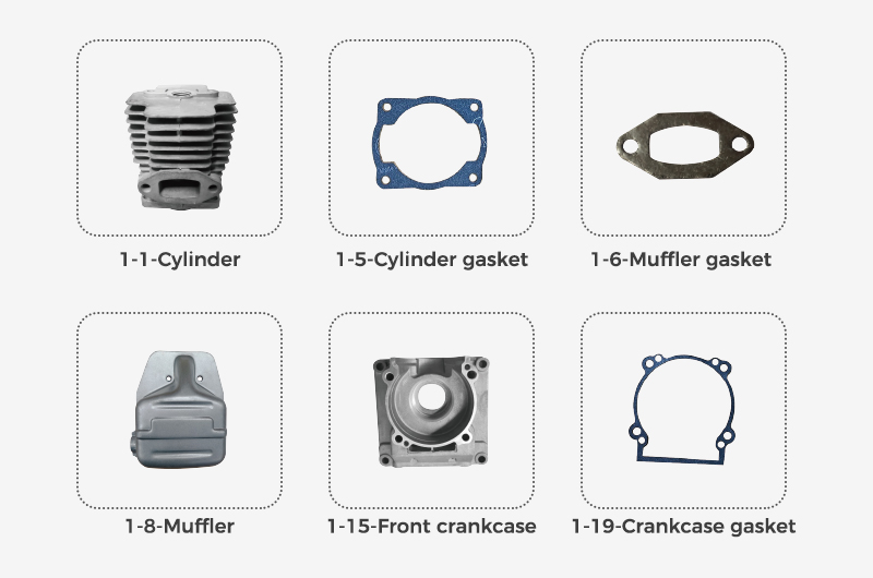 | 1-7 | Gasket | 2-33 | robber pillar |