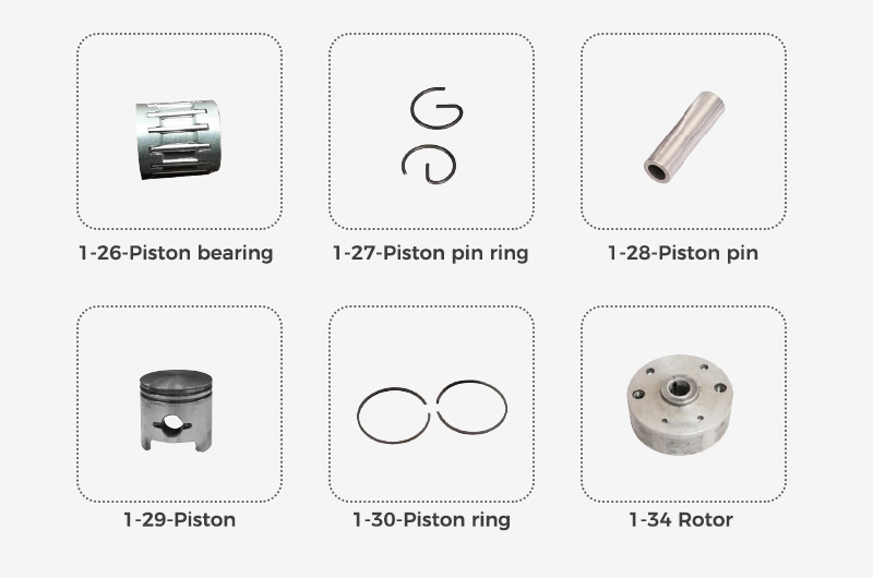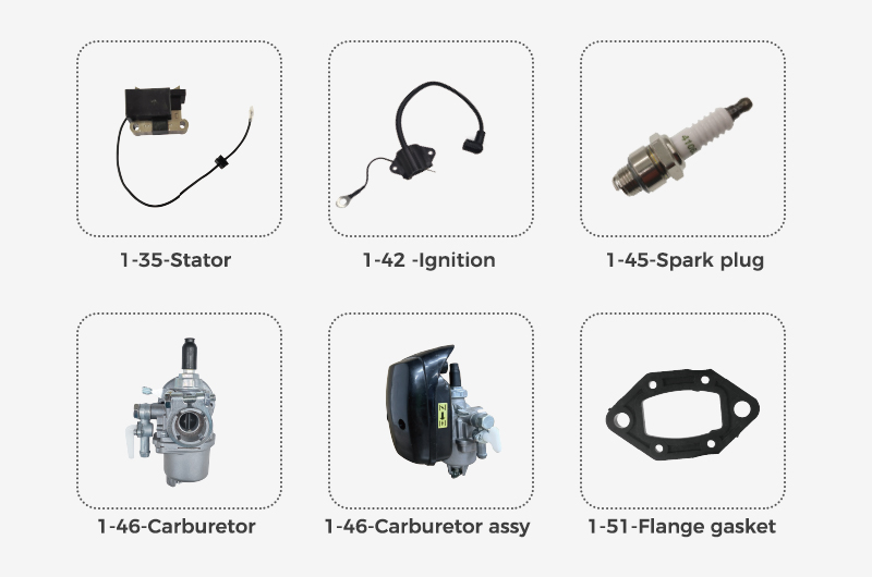 | 1-6 | Gasket | 2-31 | throttle rope |