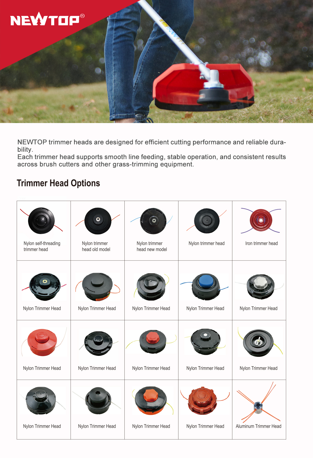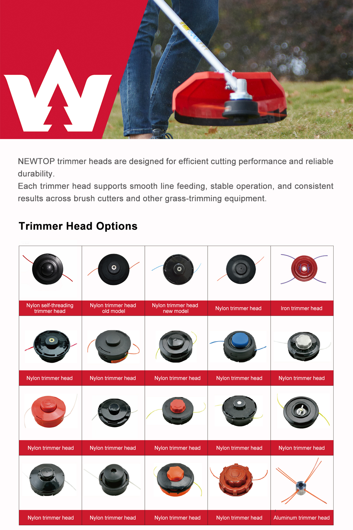The NEWTOP Brush Cutter Trimmer Head combines a durable nylon housing with high-quality professional trimmer line to support steady cutting performance in routine and demanding trimming work. Its materials are selected to withstand repeated impact and rotational stress, helping the brush cutter operate smoothly through grass, weeds, and daily vegetation maintenance.