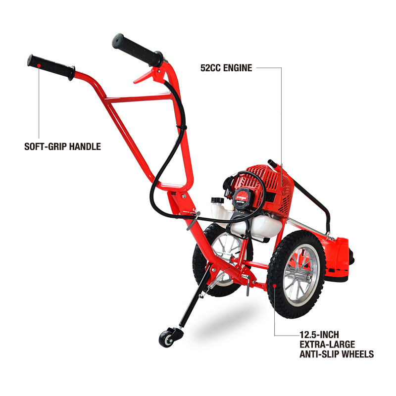 The metal three-tooth blade cuts efficiently through dense weeds and undergrowth, while the machine’s lightweight build reduces fatigue during prolonged operation. The balanced design ensures comfortable handling and improved maneuverability across different working conditions.