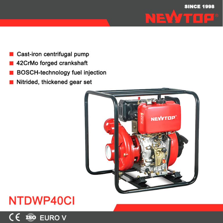 Built for significant water-movement applications, the NEWTOP NTDWP40CI utilizes a robust cast-iron pump and a high-torque diesel engine to deliver strong flow while maintaining stable lift performance. It is ideal for large-area irrigation and emergency pumping.