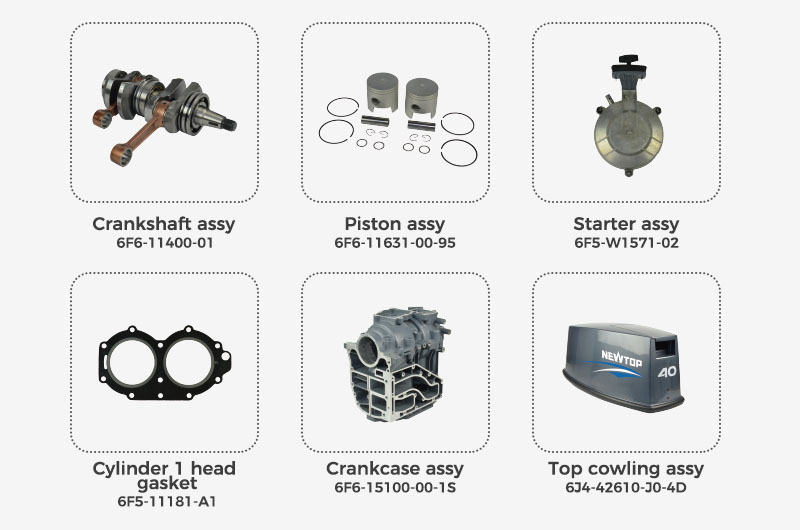 NEWTOP develops T40J/T40G parts with an emphasis on power stability and long-term endurance. These components help maintain smooth operation for 40HP outboard engines, supporting strong propulsion and dependable overall performance in marine applications.