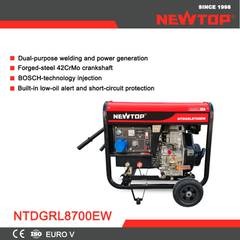 The NEWTOP Diesel Welding Generator NTDGRL8700EW is developed for users who require a higher welding current range and a machine capable of supporting multiple welding electrodes. Its diesel engine, combined with forged-steel internal components and BOSCH-technology injection, maintains smooth operation and dependable output during routine field work.