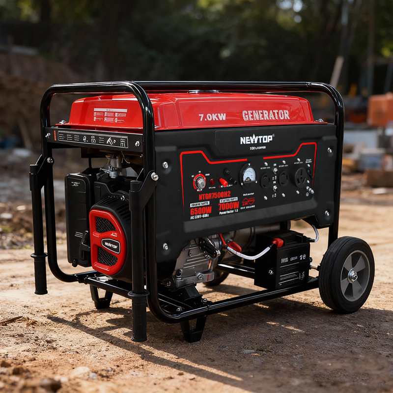 Built with reinforced internal components and a high-torque NEWTOP engine, the NTGR7500H2 ensures reliable 6.5 kW performance even under fluctuating loads. The SENCI copper-winding alternator enhances electrical stability, and the strengthened chassis minimizes vibration for better durability. Its generous fuel capacity supports long operating hours, giving contractors, farmers, and field operators a stable and cost-effective power source.