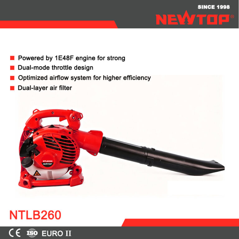 The NEWTOP NTLB260 handheld leaf blower is built for effortless yard cleaning with lightweight handling and smooth pull-start performance. Its fuel-efficient two-stroke engine delivers strong air output with reduced vibration, making it ideal for domestic and light-commercial users looking for dependable garden machinery for sale from a trusted outdoor power equipment company.