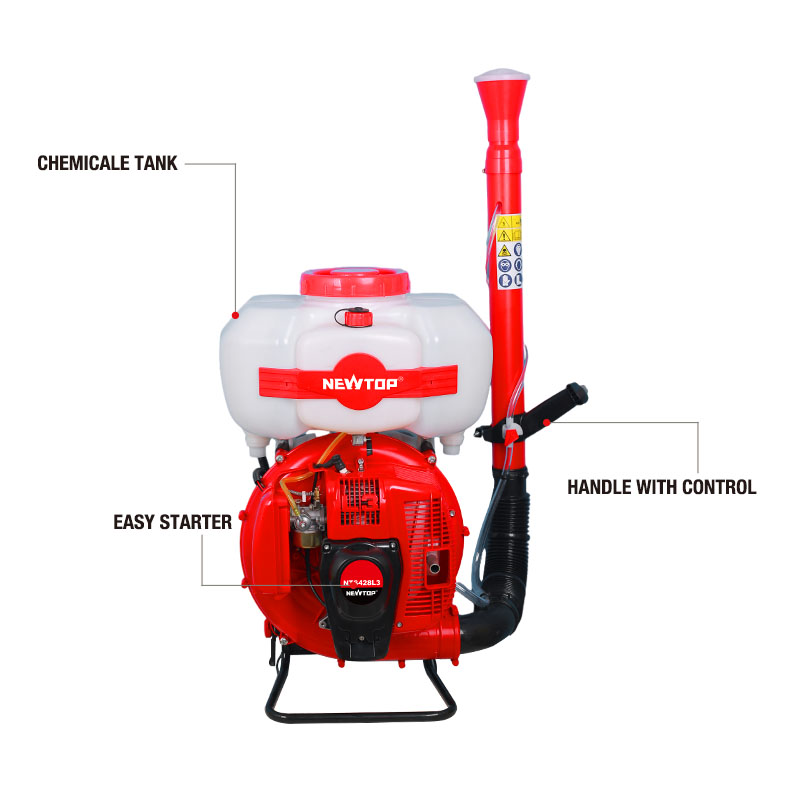 The NEWTOP Sprayer NTS428L3 is engineered for power and durability. Equipped with a 77cc engine, it delivers stable performance, strong airflow, and low vibration. Ideal for professional agriculture, pest control, and sanitation projects, this model ensures reliability and long working hours from a trusted outdoor power equipment company.