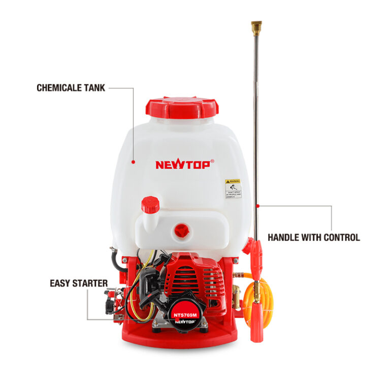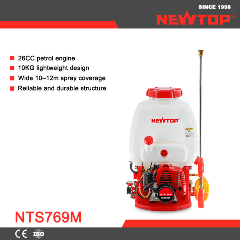 The NEWTOP NTS769M backpack sprayer is engineered for high-efficiency crop protection and field maintenance. Its powerful 26CC petrol engine and precision pump ensure stable output pressure for large-scale spraying. Ideal for pest and disease control across orchards, tea fields, lawns, and roadside vegetation.