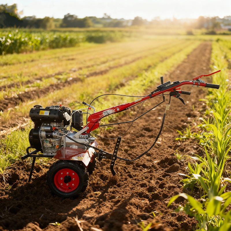 The NEWTOP DMT120KM is a diesel-powered tiller designed for challenging soil environments where consistent torque and stronger penetration are required. Its NEWTOP 186FA diesel engine provides dependable performance and improved fuel efficiency, allowing users to maintain long working hours with stable output. The crankshaft-and-gear direct-drive system is built to handle stress and kickback, making the machine suitable for tougher agricultural tasks.