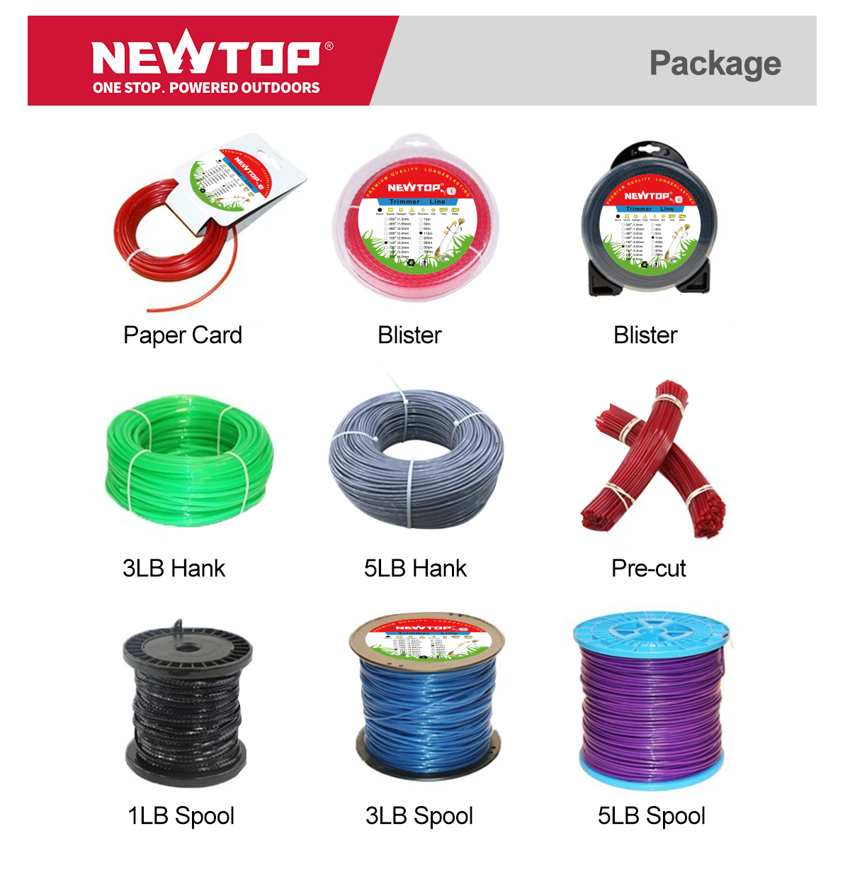 The NEWTOP Nylon Trimmer Line is designed to handle everyday trimming applications, including grass cutting, weed control, and light vegetation maintenance. Its professional-grade nylon formulation offers strong resistance to wear and breakage, helping extend service life even under frequent use.