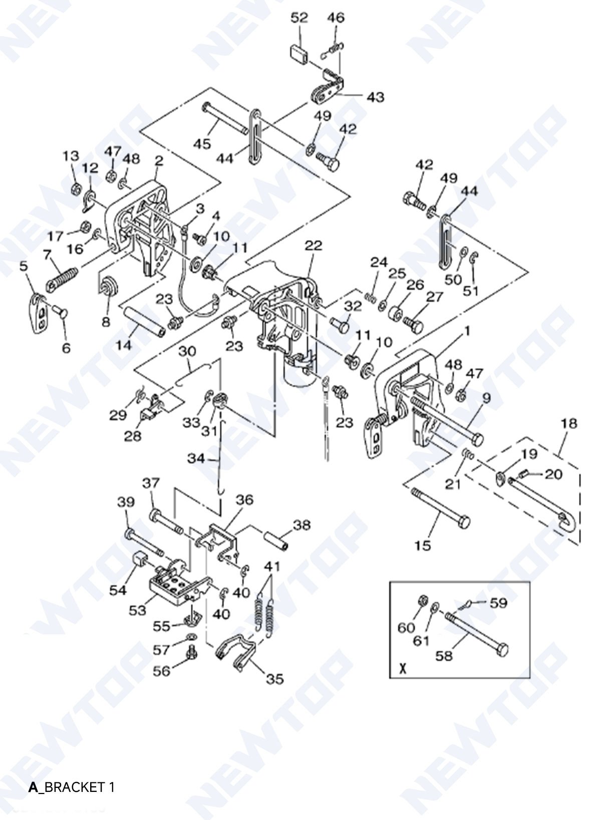 | A53 | lever shallow water drive1 | K2 | crankcase assy |