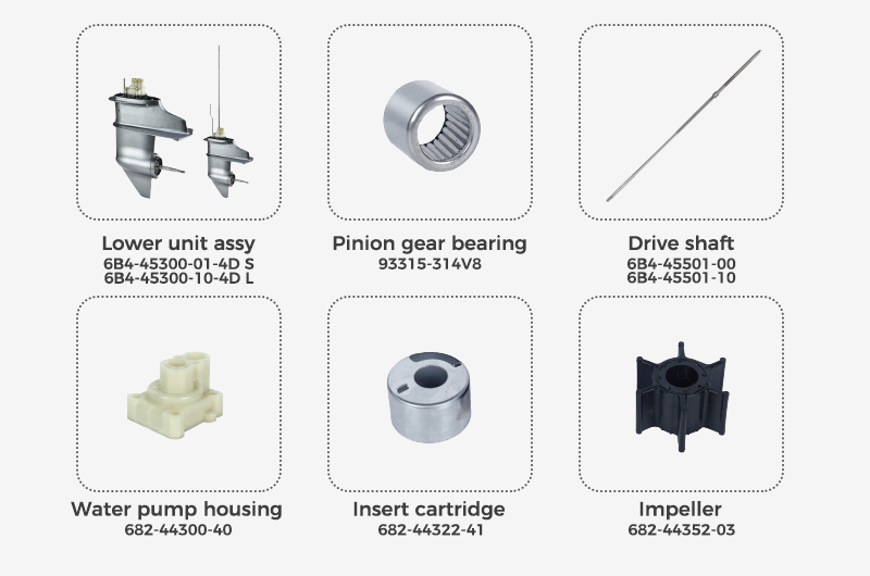 Cylinder-related parts provide balanced combustion efficiency, while the CDI ignition system supports quick, dependable starts. Gear case components are built to ensure proper alignment and strong load resistance, contributing to smooth propulsion in varied boating conditions.