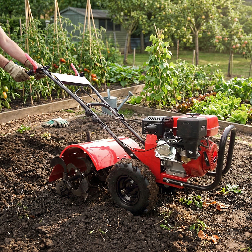 The NEWTOP Tiller Cultivator NMT9003 is shaped around the needs of users who prefer a machine that is simple to operate yet strong enough for household garden work. Instead of relying on complex gearing, it uses a constant-speed layout that keeps the controls intuitive—particularly helpful when tilling narrow beds, preparing soil for seasonal planting, or managing small backyard plots. Its 7.5 hp engine provides reliable force for loosening compact soil, allowing users to work steadily without frequent adjustments.