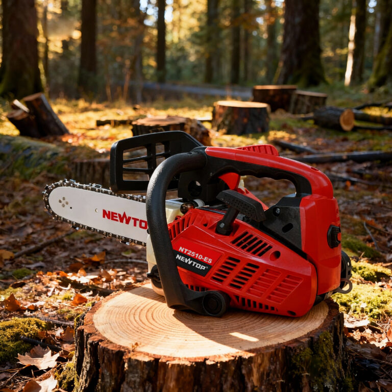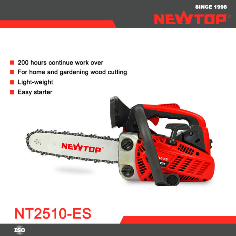 The NEWTOP Chainsaw NT2510-ES combines portability, performance, and convenience in a lightweight body. Powered by a 2-stroke petrol engine, it’s ideal for everyday garden work, pruning, and firewood cutting. Perfect for homeowners and professionals looking for dependable gasoline chainsaws from trusted chainsaw manufacturers and outdoor power equipment dealers.