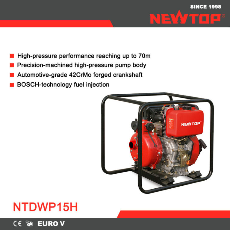 The NEWTOP NTDWP15H is built around a robust diesel platform featuring a forged 42CrMo crankshaft, BOSCH-based injection technology and a strengthened gear transmission system. These components work together to deliver strong, steady pressure output suitable for small-to-medium water-transfer tasks.
